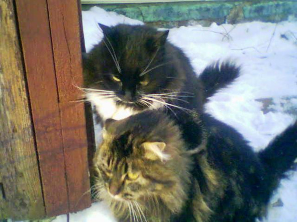 И вот я повзрослел. Мы с братом то и дело, что крутились у хозяйки под ногами. Особенно скучно было зимой. От холодного снега лапки мёрзли, и мы просились домой. Иногда, случалось, она уходила ненадолго в магазин и оставляла нас на морозе. Мы ждали у калитки, а увидев, на перегонки бежали к входной двери, чтобы первыми войти в тепло. Хозяйка думала, что мы голодные и подливала нам в мисочку молока и подсыпала кошачьего корма. За зиму наша шёрстка становилась густой и ещё больше пушистой, в зимней одежде нам было теплее. Только лапки мёрзли на морозе.