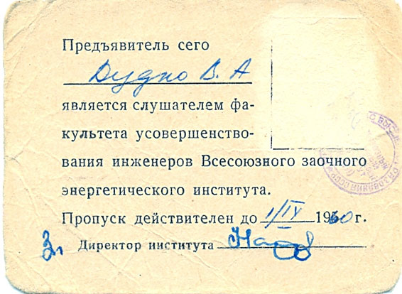 В этом 1960 году мы с ним поступили слушателями факультета усовершенствования инженеров Всезоюзного заочного энергетического института.