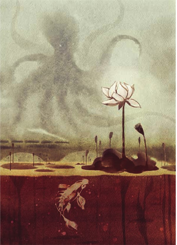 База была на Левберлете,Левом береге Леты, для непонятливых.Общие кухни и спален клети,Лаборатории и Камни Клятвы.Мы же здесь типа форпостВечности жизни,Физики, химики, ихтиологи.Воины наши когда-тоОтбили Три РечкиУ ада,Превращаясь в кипящее олово,Надуваясь в кишащее мухами облако,Пули хватая от демонских шизоглоковВ молодые прекрасные головы.Живой, умерший от руки мертвеца,Пополняет армию мёртвых.И только очень живой,Погибнув,Сопротивляется смертиДо подхода основных оживляющих сил.Мы победили.Точнее, они проиграли.И воцарилась жизнь в Дохлой Пойме.Мёртвые ходят меж насИ ничего, ничего не помнят.Зайдёшь в свою комнату – а там кормятОтрицательного младенцаКоричневой грудью.Или смотрят песчаное ралли.Или весёлую песенку крутят,Как Харон потерял веслоИ неделю грёб членом.Или пятно серой кровиНа полотенце.Мы занимаемся верхним течением.Мёртвые рыбы, водоросли-убийцы.Ты была названа в честь печеньяИ срисована с рыжей львицыТочной рукой и умелой мыслью.Я не умею с тобой быть смелым.Мы говорим лишь о работе.О лаборатории,О сетках на Чёртовом Мысе,О вытяжке из гигантского язя,О свойствах опасных прибрежной грязи.О тории и дейтерии.Но каждый день перед сномПосле гимна Витальной РодинеЯ полчаса думаю о твоих чакрах,Без огня и истерики,Просто думаю, не опуская рукиВ акры своего плодородия.От живых рыб мёртвыеОтличаются только одним признаком.(Ну, кроме рыб-призраков,Выедающих сны из мозгаС визгом пилы-болгарки)Так вот, мёртвые рыбы всегда говорят.Они просят вернуть им потерянный ад.Они умоляют их заковать,Закопать,Применить к ним яд и электросварку,Выпотрошить и зашить с камнем в брюхе.Они такие этически юркие,Если речь идёт об адских муках.А у тебя классная новая юбкаС вышитым золотом лотосомИ поясом красным.И я слежу за тобой,Не отрываясь,Хабаровским краем глаза.Сияющий ветер