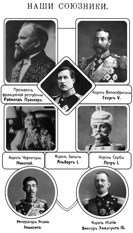 «С спокойствием и достоинством встретила наша великая матушка-Русь известие об объявлении нам войны. Убежден, что с таким же чувством спокойствия мы доведем войну, какая бы она ни была, до конца. Я здесь торжественно заявляю, что не заключу мира до тех пор, пока последний неприятельский воин не уйдет с земли нашей. И к вам, собранным здесь представителям Моих войск гвардии и Петроградского военного округа, и в вашем лице обращаюсь ко всей единородной, единодушной, крепкой, как стены гранитные, армии Моей и благословляю ее на труд ратный».