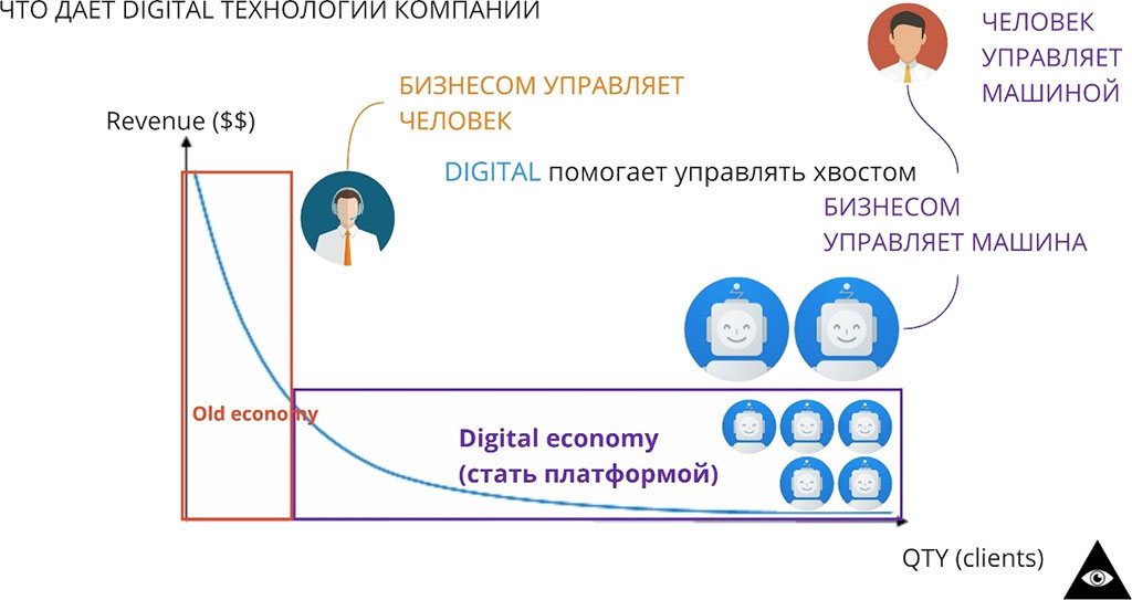 Мне часто задают этот вопрос, как понять, надо ли тратить время и силы на трансформацию или не надо. Допустим у вас есть компания, все работает, у вас есть деньги, но вы видите что все занимаются “цифровизацией”. Надо ли вам ею заниматься, чтобы не попасть под стадное чувство. Как понять? Или наоборот. вам поставили задачу посчитать и оценить эффект от цифровизации, как это сделать? Для ответа на эти вопросы, я тут нарисовал интересную картинку, чтобы на пальцах все объяснить: