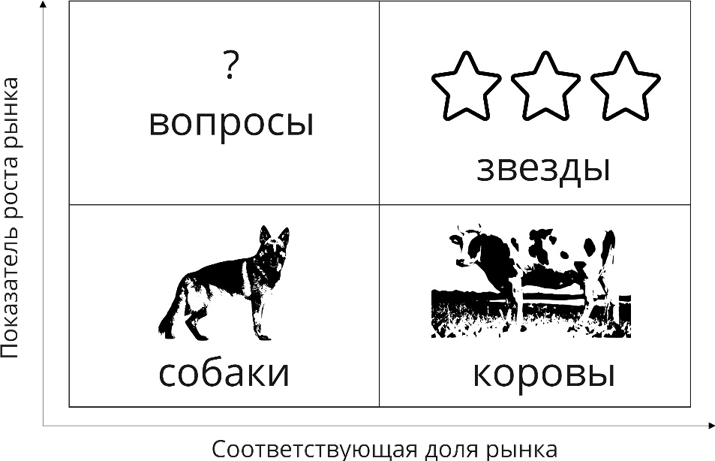 3. Коровы (или «Дойный коровы») – У них высокая доля на рынке, но низкий объем продаж. Они не требуют инвестиций и обеспечивают высокий доход.