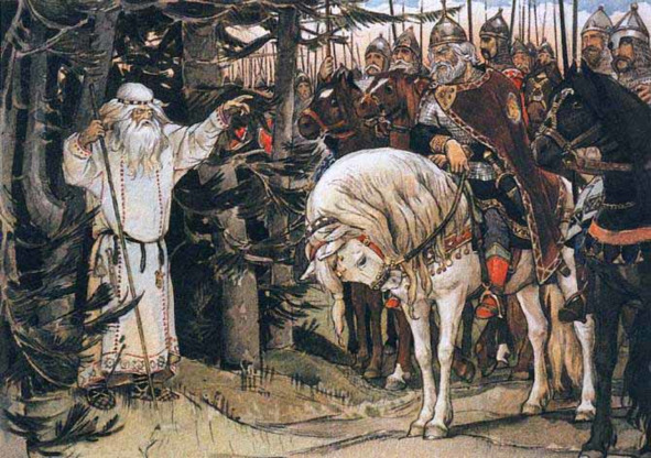 Да такими властелинами в мире были именно Волхвы, те, для кого слово было грозным оружием, могло убивать и воскрешать из мертвых. И даже грозный Олег Вещий, покоривший полмира, стал только игрушкой в руках волхва. Как только он услышал, что «примет смерть от коня своего», куда делась его отвага и бесстрашие. В то время как хитрый волхв просто отправлял его в храм Световида, чтобы там он узнал о том, сколько осталось ему жить. (А гадали о важных событиях при помощи белых коней, оставшихся при храмах).