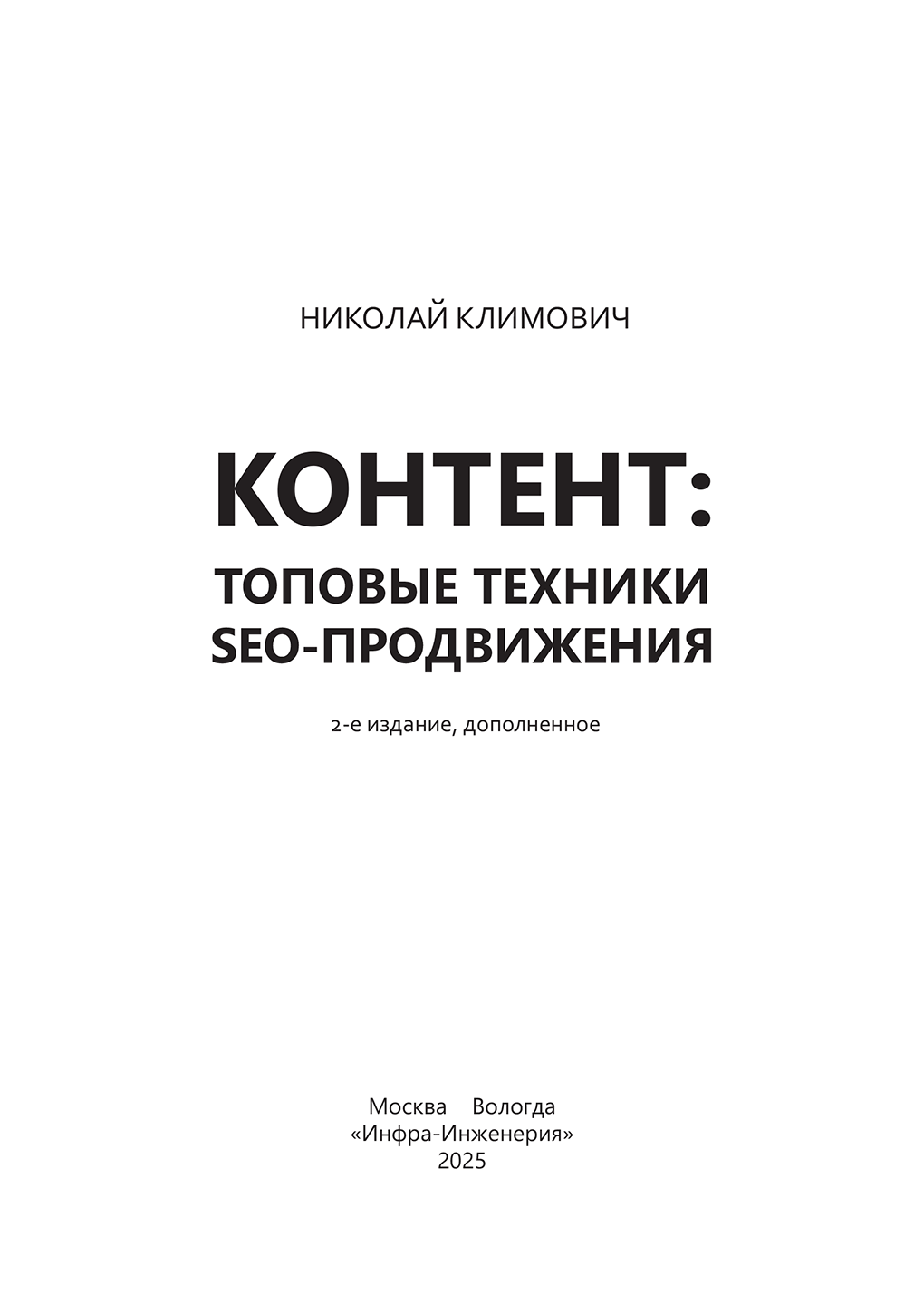 Досадно, но зачастую поисковая выдача пестрит страницами, которые содержат низкокачественный контент. Я написал эту книгу с целью рассказать о том, как можно подготовить качественные тексты и затем вывести их в топ-10. В книге я собрал ответы на все самые распространенные вопросы, которые задают мне мои клиенты. Я также осветил те вопросы, которые мне не задают, а стоило бы, так как данная информация может существенно повлиять на успех вашего контента.