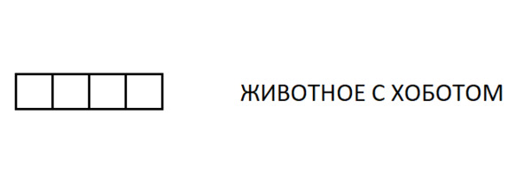 Человечек взял карандаш, который был раза в два больше него по росту, и нарисовал на листе бумаги строку из четырех клеточек. Потом он написал рядом с этой строкой: «ЖИВОТНОЕ С ХОБОТОМ» и вопросительно посмотрел на Петю: