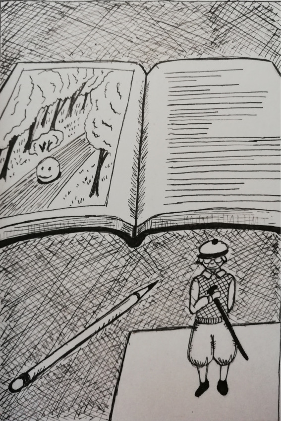 И вот в один прекрасный день, когда он снова по иллюстрациям пытался угадать о чем книга, из под цветной странички вылез маленький человечек. Он снял кепочку и поклонился: