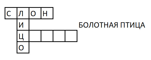 Библиотечный от буквы «Ц» вбок нарисовал еще четыре клеточки. И написал «Болотная птица»