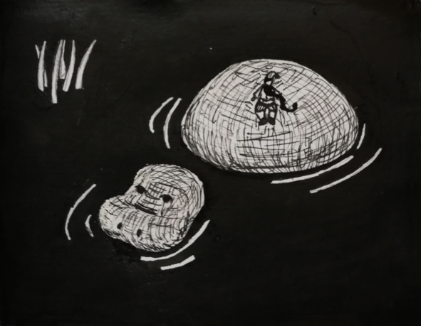 Он раскрыл книгу на нужной странице и как раз увидел, как маленький зеленый человечек спрыгнул со спины бегемота в мутную воду.
