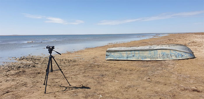 Мы хотели ввести в серию про Акеспе процесс рисования корабля. Мы даже визуализировали себе эту линию фильма – на фоне отступающего моря стоит мольберт с нарисованным кораблем, и таким образом создается впечатление, будто морское судно с холста скользит по реальной водной глади. Мы хотели воссоздать некий мираж, желание местных жителей, чтобы вернулось море, а вместе с ним – и прежняя бурная жизнь рыбаков. Так что на съемки Мадина прихватила картину с кораблем, который мы предложили раскрасить детям героев фильма. Но с самого начала эта затея была запорота, а в конце концов дети и вовсе передумали рисовать.