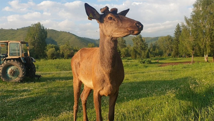 И вот ближе к завершению наших съемок произошла та самая встреча, о которой я упоминала выше. Был вечер, и я вышла прогуляться по территории маральника. Обитающие на ней красивые животные чуют людей и, как правило, держат дистанцию. Я отошла от домиков уже на приличное расстояние, как вдруг услышала шорох. Я повернулась и увидела марала. Он стоял метрах в пятидесяти и жевал, с опаской поглядывая на меня. К слову, марал был в три раза больше меня, не говоря уже о его весе. Я остановилась, чтобы не пугать его. Взяла телефон и стала снимать. Я хотела пройти мимо него и стала спокойным голосом ему это объяснять, но марал меня неправильно понял, и стал подходить ко мне все ближе. Все очарование и милота разом исчезли, и на смену им пришел страх. Я убрала телефон и просто стала ждать. Он подошел ко мне вплотную, и сердце мое в тот момент перестало биться. Я решила не шевелиться, чтобы не спровоцировать агрессию, а он, в свою очередь, наклонился к моей голове и стал жевать мои волосы!!! По всей видимости, через несколько секунд, он понял, что на вкус они ему не нравятся, и прекратил это делать. Потом он отвлекся на чесание своего бока (спасибо щекотавшей его мошке), и в этот момент я посмотрела в сторону и увидела старый ржавый вагончик, куда тут же и запрыгнула.
