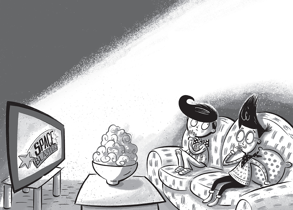 ‘Popcorn,’ said Zoe. ‘You definitely need popcorn for a SPACE BLASTER marathon.’