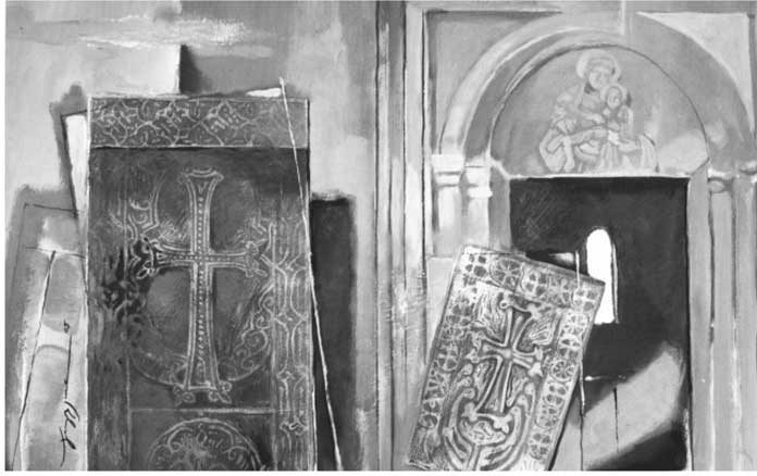 – Это Ашот. Он сделал по фотографии точную копию. Знаешь, какой он хороший каменщик?! Это сейчас он вынужден просто строить, а на самом деле он каменщик-реставратор. Но кому это сейчас надо?! Хорошо, что хоть иногда бывает у него настоящая работа. Когда в областном центре диаспора ставила церковь, его пригласили, или вот этот хачкар. А как ему тяжело было работать. Камни здесь не такие, как у нас. Здесь очень твёрдые, почти гранит, но Ашот справился.