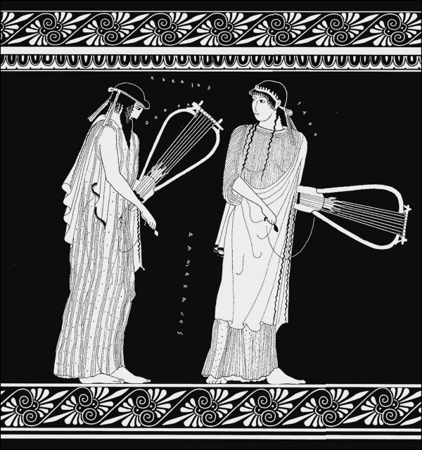 Сапфо и Алкей. Рисунок на греческом кратере. V в. до н. э.