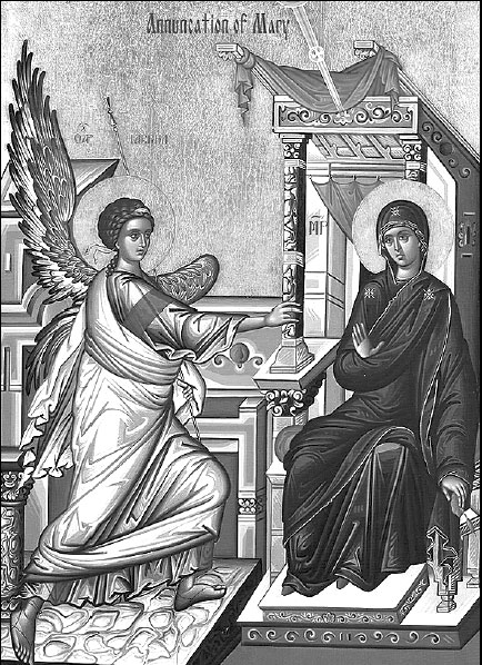 По сказанию Евангелия, Архангел Гавриил явился Деве Марии в то время, когда она жила в Назарете у Обручника Своего Иосифа. По преданию, в это время она занималась чтением Святого Писания и размышляла о словах пророка Исаии: Се Дева во чреве зачнет – и пламенно молилась, да сподобит Ее Бог скорее увидеть Мессию. Вдруг предстал пред Нею Архангел Гавриил и, как бы в ответ на Ее мысли, произнес Божественное приветствие: Радуйся, Благодатная! Господь с Тобою; благословенна Ты в женах (Лк. 1, 28).