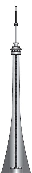1 – Москва (башня Шухова), 148 м; 2 – Париж (Эйфелева башня), 312 м; 3 – Токио, 333 м; 4 – Москва (Останкино), 540 м; 5 – Торонто, 550 м