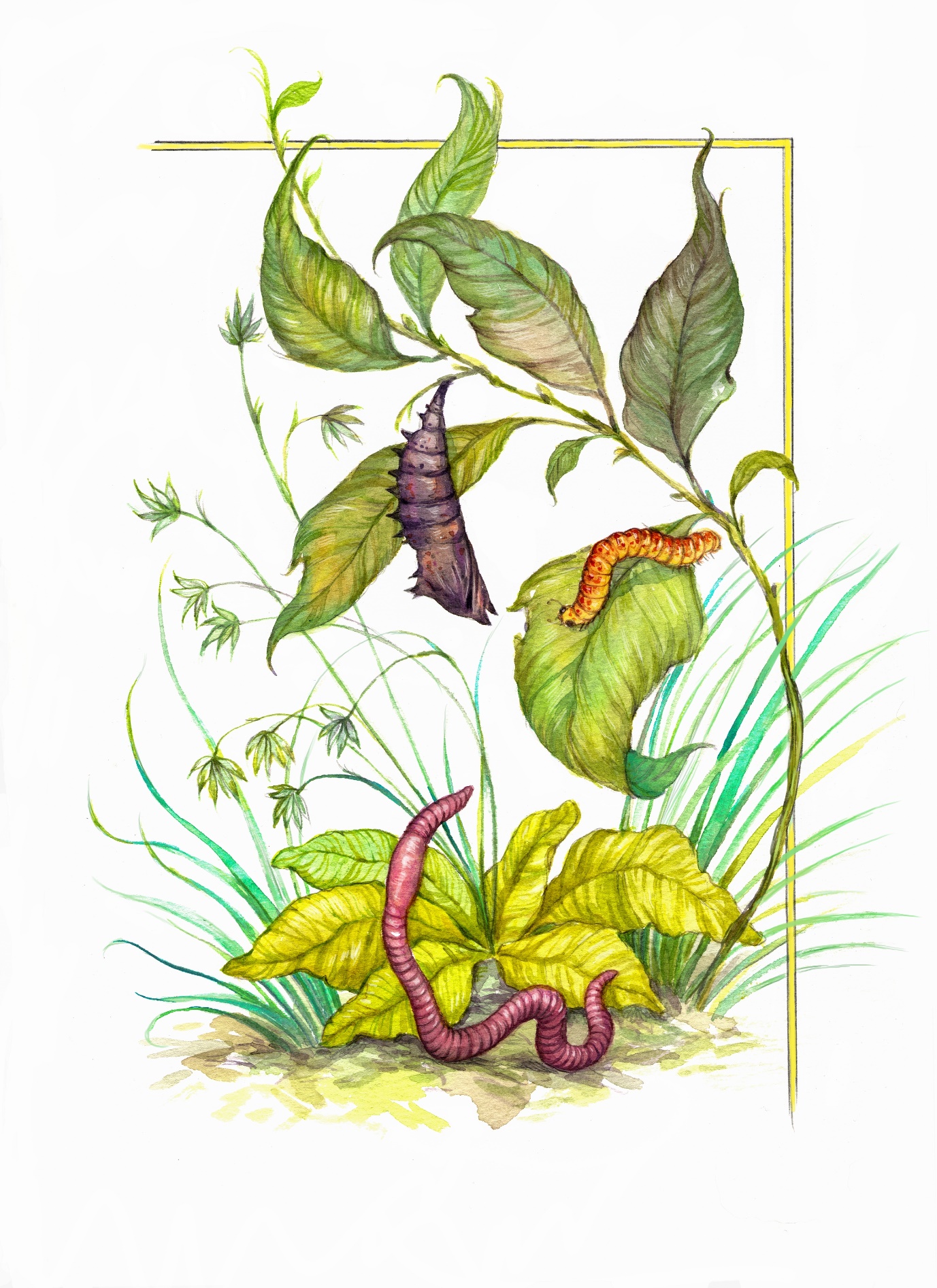Грустный Червяк заполз в тень, свернулся калачиком и тихо заплакал. Где же ему найти нитку, чтобы сделать кокон, в котором он превратится сначала в куколку, а затем в прекрасное крылатое имаго?