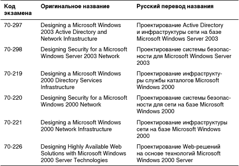 В табл. BЗ представлен список экзаменов по проектированию систем Microsoft.