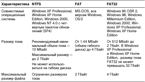 Сравнительные характеристики файловых систем, которые поддерживаются Windows XP Professional, приведены в табл. 1.1.