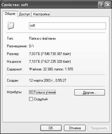 Воспользуйтесь кнопкой Другие в окне Свойства объекта (рис. 1.1), чтобы просмотреть список дополнительных атрибутов файла или папки (рис. 1.2) на томе NTFS. Окно свойств файла или папки на томе FAT или FAT32 такой кнопки не имеет.