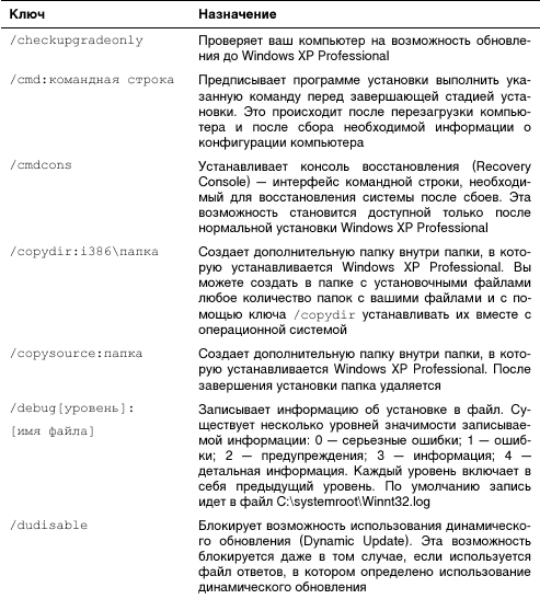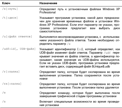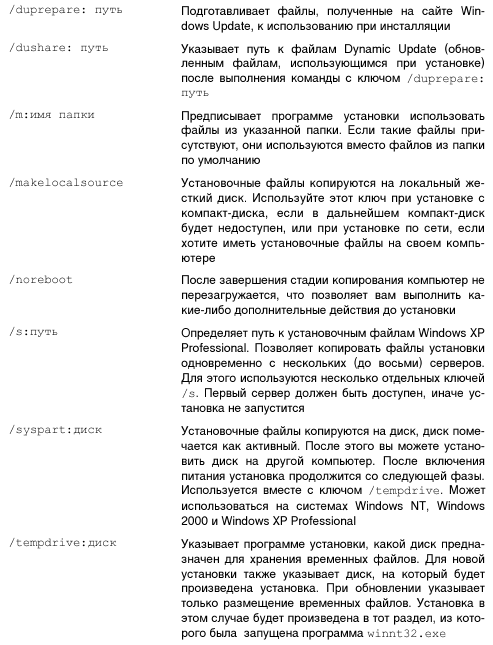 Ключи запуска winnt32.ехе рассмотрены в табл. 1.3.