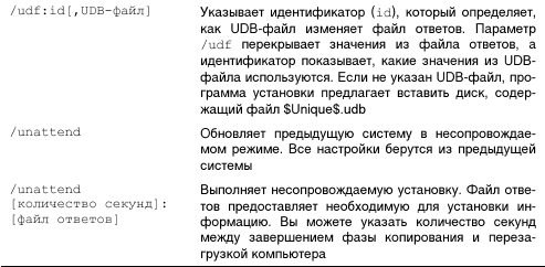 Если при создании файла ответов вы указали несколько имен компьютеров, создается файл с расширением udb (Uniqueness Database File), который обеспечивает возможность указания параметров для каждого компьютера. Параметры файла UDB перекрывают соответствующие параметры файла ответов (см. разд. 1.2.6).