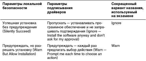 Несмотря на различия в названиях, параметры локальной безопасности соответствуют параметрам подписывания драйверов, рассмотренным ранее в этой главе. Сопоставление названий параметров приведено в табл. 2.1.
