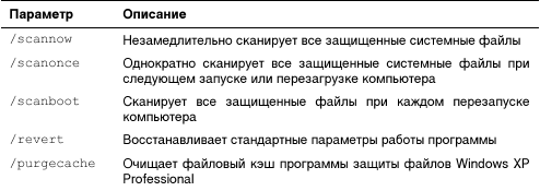 В справочной системе Windows ХР Professional говорится, что параметр /purgecache очищает файловый кэш программы защиты файлов Windows ХР Professional и немедленно сканирует все защищенные системные файлы. Однако, если выполнить команду sfc /purgecache, можно убедиться, что процесс сканирования этой командой не запускается, а лишь происходит очистка файлового кэша, т. е. удаление всех файлов из каталога %systemroot%\system32\dllcache.