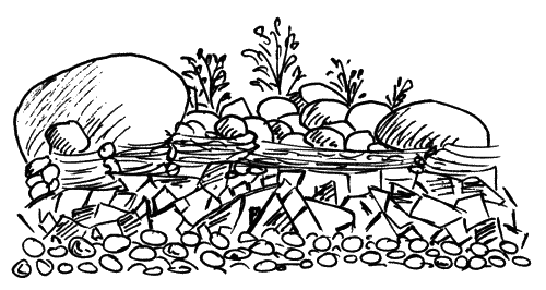 Если насыпь осыпается, ее укрепляют у основания большими камнями, а вверх по склону меньшими. Камни нужно не вдавливать в почву, а укладывать в подготовленную выемку. По краям высаживают кусты с мощной корневой системой и густой листвой. На склонах террас целесообразно посеять полевой клевер.