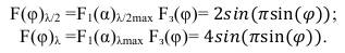 Максимальные значения этих функций будут F(φ)λ/2max=2 и F(φ)λmax=4, при двух значениях углов φ=30о и φ=150о.