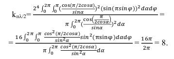 Чтобы перейти от мощности помех в эквивалентной антенне к мощности помех в реальной антенне, введем коэффициент пересчета, определяемый как: