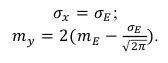 Из (76) и (77) найдем значения параметров σx и my, необходимых для формирования случайного процесса с огибающей, соответствующей рассчитанной.