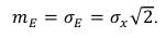 Если помеха, распределенная по нормальному закону, имеет математическое ожидание mx=0 и некоторое среднеквадратическое отклонение от математического ожидания σх, то медианное значение огибающей этого процесса, mE и среднеквадратическое отклонение от медианного значения σE, в соответствии с (44) и (47), всегда будут равны: