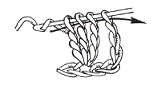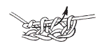 Ему соответствуют 3 петли подъема. Для его выполнения рабочую нить накидывают от себя на крючок, вводят его в петлю основания, подхватывают лежащую на указательном пальце левой руки нить и протягивают ее через петлю цепочки. На крючке образуется 3 петли (ведущая петля, вытянутая петля и накид).