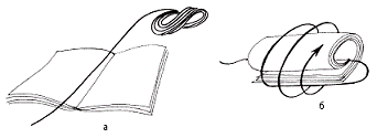 Если перемоточного устройства нет, можно посоветовать наматывать нить на сложенные вместе указательный и большой пальцы, при этом начальный конец длиной около 20 см следует оставить свободным, а намотку производить равномерно, избегая сильного натяжения нити.