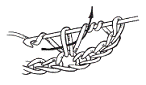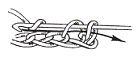Затем вводят крючок в петлю наборной цепочки или предыдущего ряда, с указательного пальца левой руки подхватывают нить и протягивают ее через петлю ряда. Затем снова подхватывают нить и провязывают ее через 3 петли на крючке.