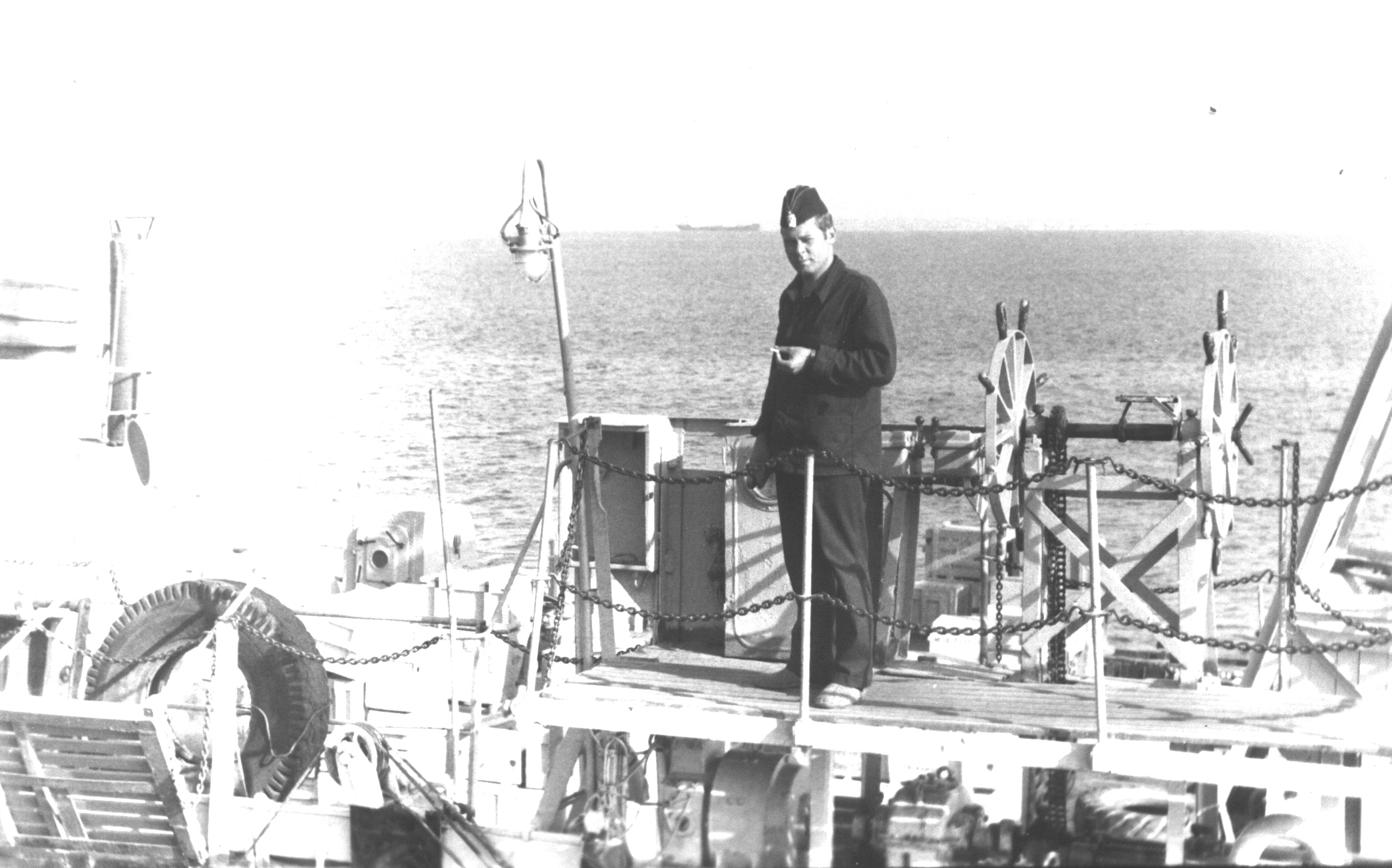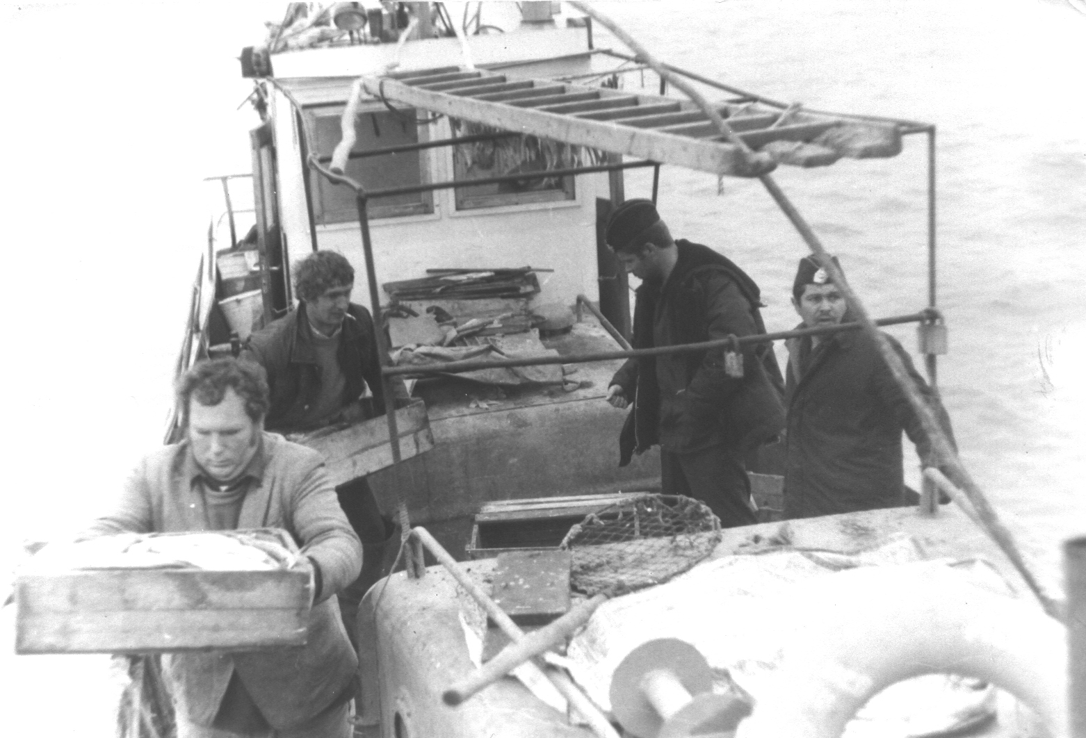 В один из этих дней стоянки я решил половить рыбу с кормы дока с помощью спиннинга. Устроившись поудобнее, коротал время, периодически забрасывая снасть. Рыба не желала клевать, и вскоре мне это занятие надоело. Я уже сматывал спиннинг и собирался заканчивать рыбалку, как к корме дока подошел на малой скорости небольшой рыболовный сейнер. Поприветствовав друг друга, завязался разговор.