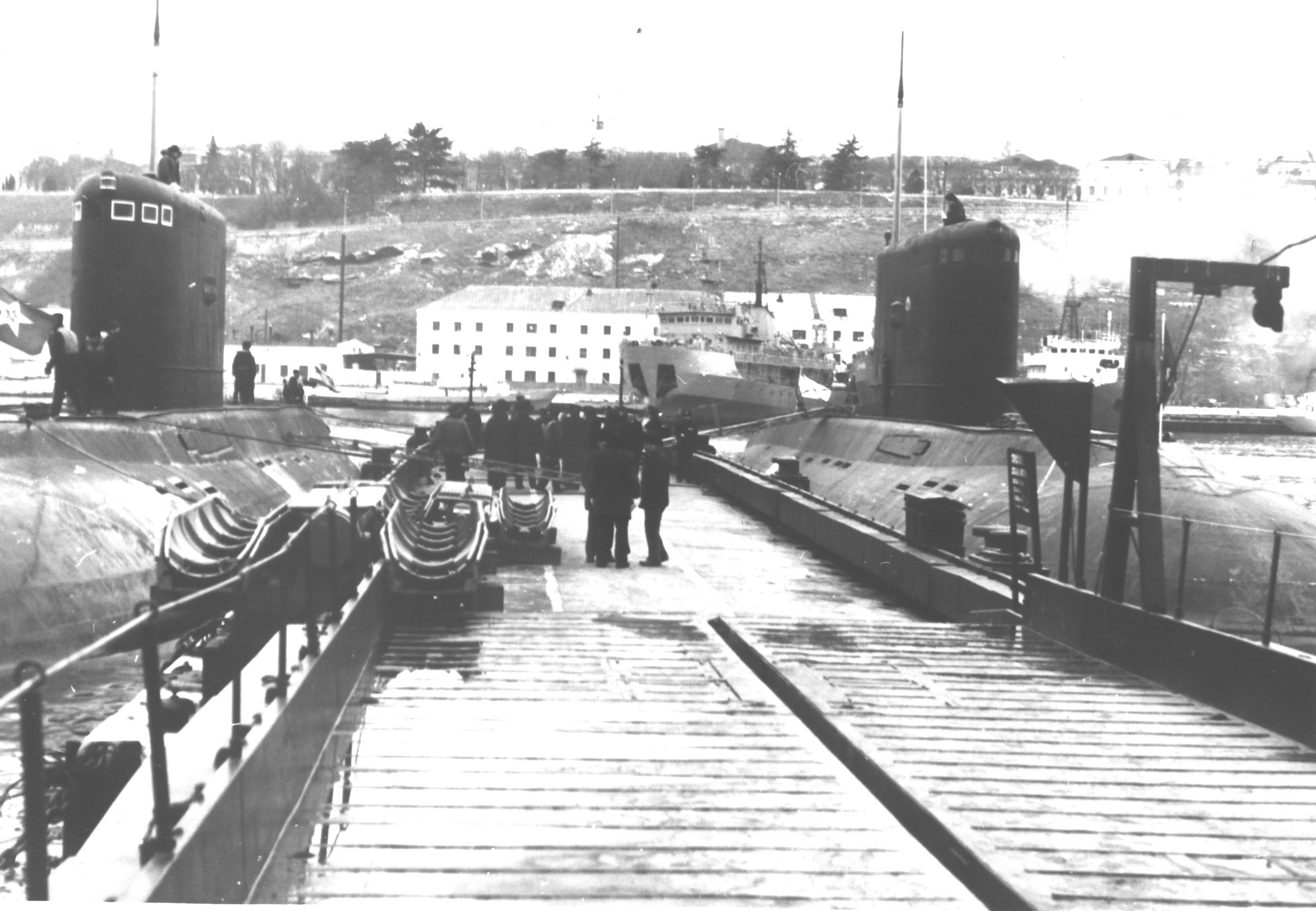 Подводные лодки проекта 877 у плавпирса в Южной бухте. Слева Б-871