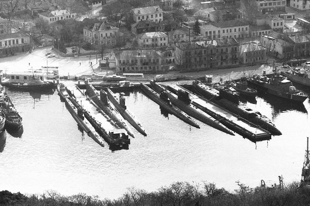В годы моей подводной службы Балаклавская бухта полностью находилась во власти подводных сил Черноморского флота. Никаких фешенебельных яхт и катеров здесь и в помине не было. Все здесь было подчинено деятельности 14-й дивизии подводных лодок и входящей в ее состав 155-й бригады. Подводные лодки различных проектов по два-три корпуса занимали все пирсы бухты. На самих пирсах постоянно выполнялись какие-то работы: погрузка-выгрузка торпедного и ракетного боезапаса, замена аккумуляторных батарей, прострелка торпедных аппаратов водой и торпедо-болванками, прием различных запасов.