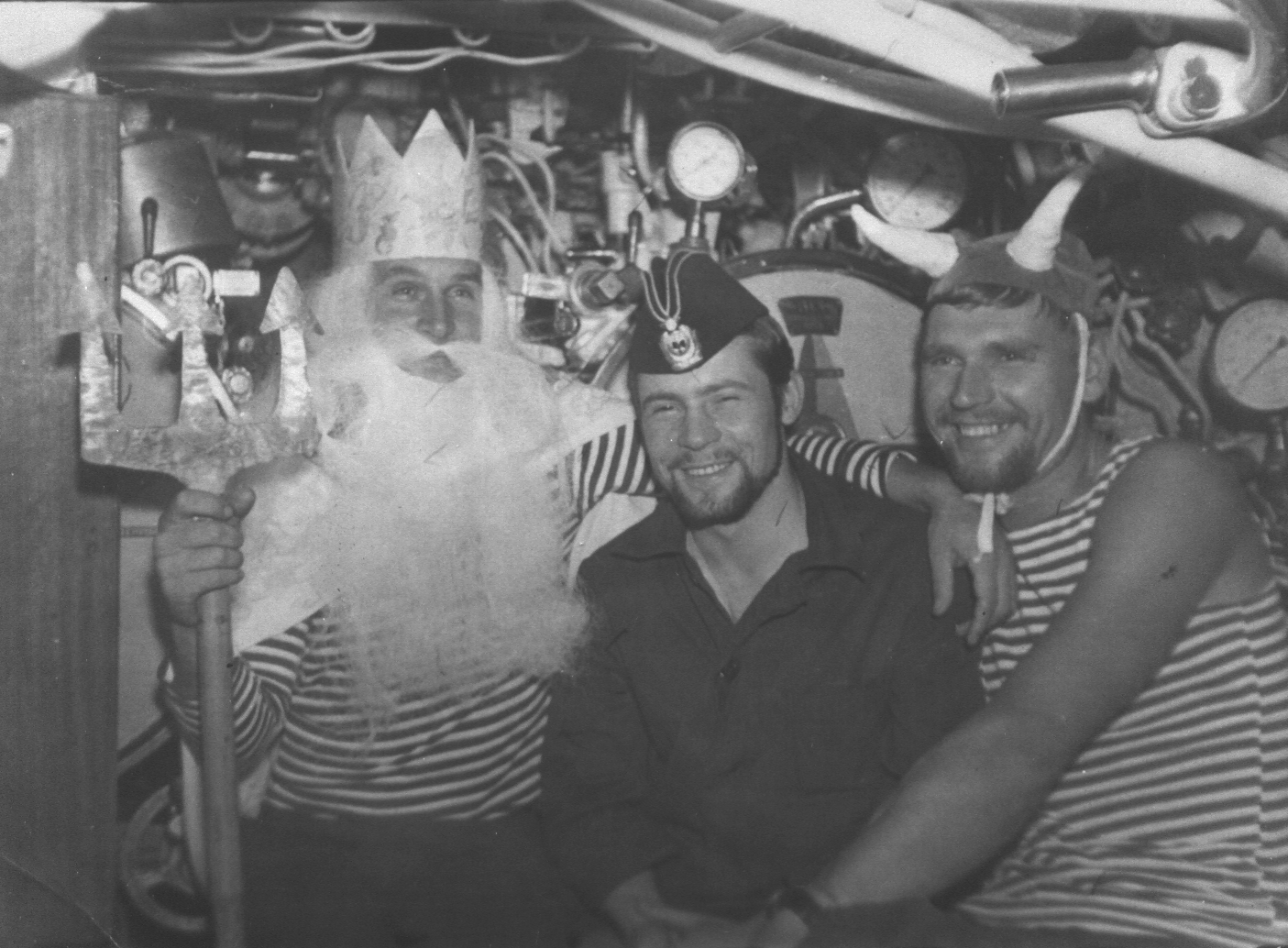Празднование Дня Нептуна. В центре старший помощник командира старший лейтенант В.А. Аникин