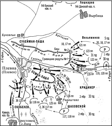 Тем не менее именно на Гривицу была направлена атака основных сил IX корпуса. Скобелев же, наносивший удар с юга на самые слабозащищенные турками участки, к своим нескольким сотням казаков получил всего лишь один батальон пехоты и десять орудий.