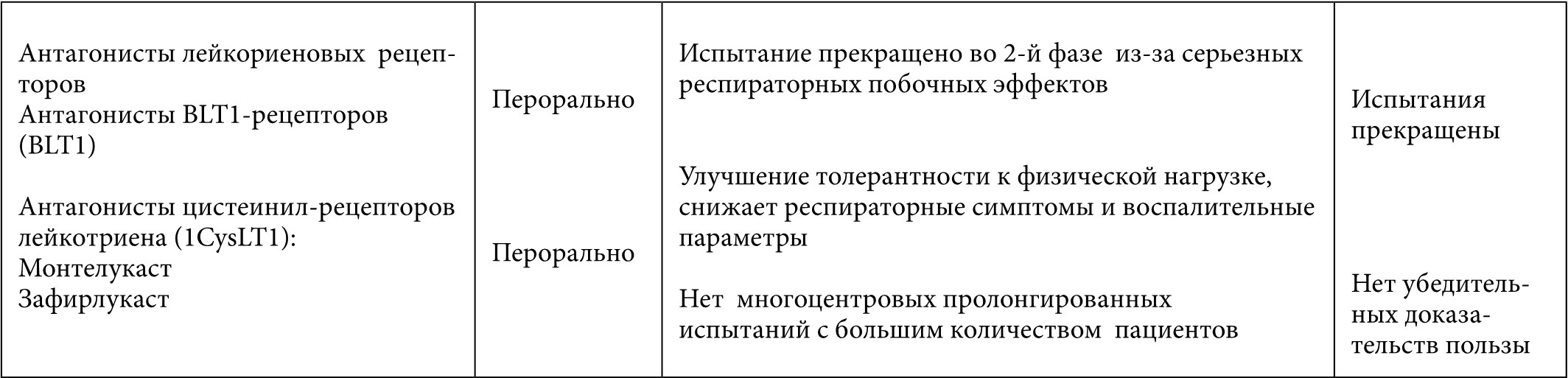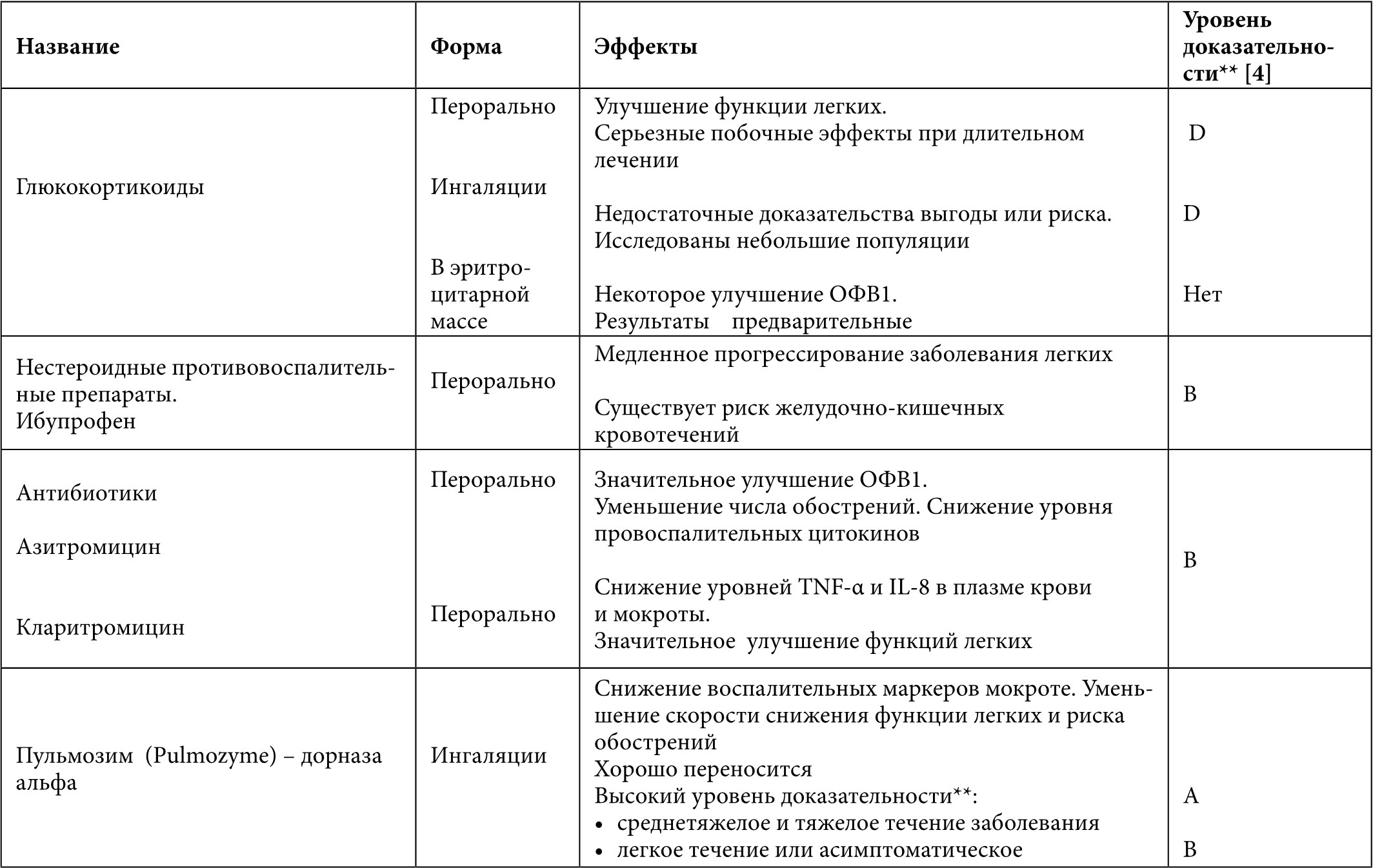 Таблица. Противовоспалительная терапия при муковисцидозе10