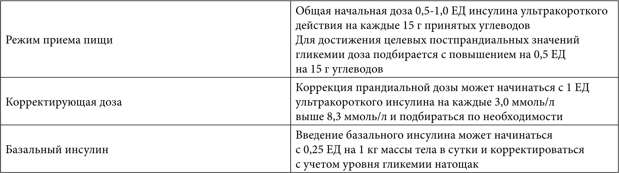 Таблица 4. Общие принципы инсулинотерапии при МЗСД [1]