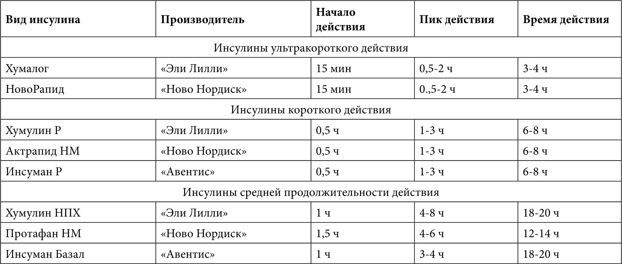 Таблица 5. Фармакокинетическая характеристика различных видов инсулина
