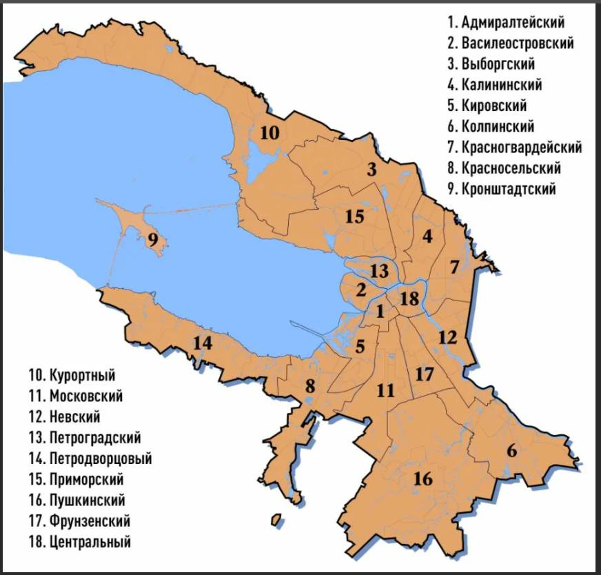 Рисунок 2. Схема Санкт-Петербурга по районам1