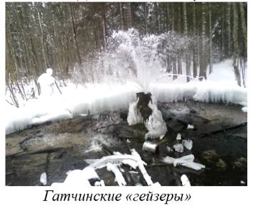 В Гатчинском районе существует ряд уникальных для Ленинградской области природных объектов. В 10 километрах от Гатчины находятся «Гатчинские гейзеры» – своеобразные природные фонтаны, в которых вода пробивается мощным напором из-под земли. Происхождение «гейзеров» до конца не изучено, предположительно, это вышедшие из работы скважины, в количестве 6 штук, расположенные в лесополосе. Другим уникальным природным объектом, к которому также приложил руку человек, является Борницкий карьер близ деревни Новое Хинколово. Представляет собой бывшее место добычи камня с чистой изумрудной водой и песчаной насыпью, которая благодаря природным явлениям приобрела форму кратеров. Карьеры с изумрудной водой можно найти и в Замостье.
