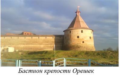 , декабристы, брат В.И. Ленина и другие революционеры. Крепость сильно пострадала в годы Великой Отечественной войны и сейчас на местах руин установлены памятники защитникам крепости. Военный гарнизон крепости, крестьяне и моряки селились на территории современного Шлиссельбурга и в городе существовали различные объекты характерные для портового города: постоялые дворы, военные здания, церкви различных конфессий. В настоящее время архитектура города утрачена и главными достопримечательностями являются военные объекты и памятники: Крепость «Орешек» внесенная в Список Всемирного наследия ЮНЕСКО, экспозиция «Эхо великих сражений», памятник Петру