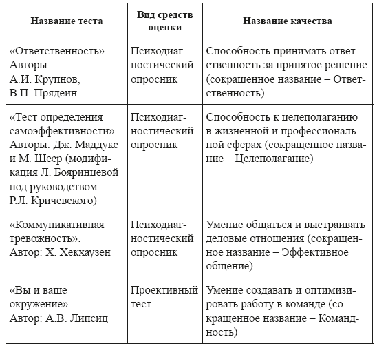 Перечень диагностируемых личностных качеств и средств их оценки