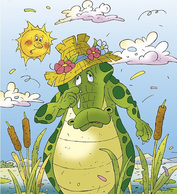 Дил Кроко сидел рядом со своим домиком на берегу пруда и тяжело вздыхал. Утром он не нашёл ведёрко и так расстроился, что решил карасей больше не ловить. Дил Кроко сказал: