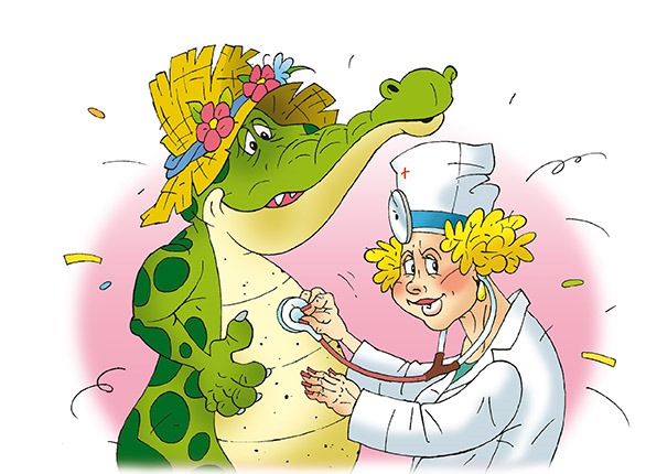 – То, что у нас больной крокодил! – сказала доктор Нина и достала из своего чемоданчика докторскую ложечку и докторскую трубку. Потом она добавила: – Я хочу вас осмотреть, прослушать и выслушать. Откройте рот и скажите: «А-а-а!»
