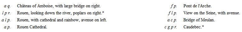 The plates marked with a star are peculiarly desirable. See note at the end of Appendix I. The letters mean as follows:—